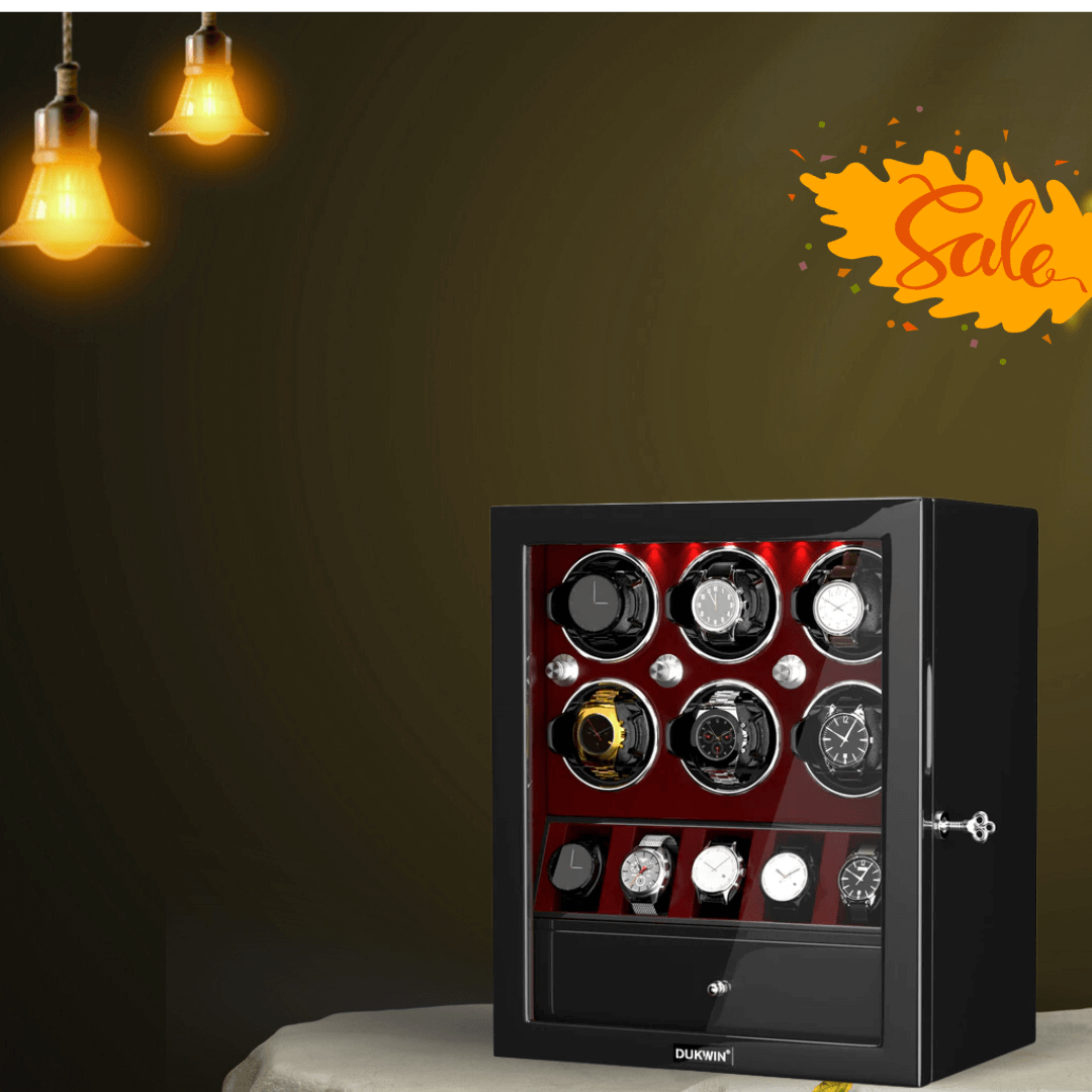8 Watch Winders with 6 Watches Organizer Case Automatic Rotation - Red