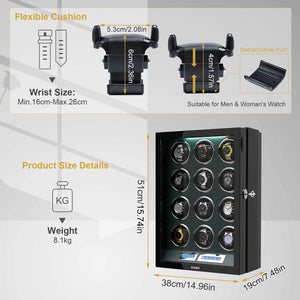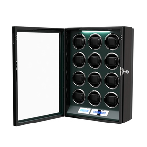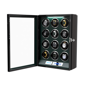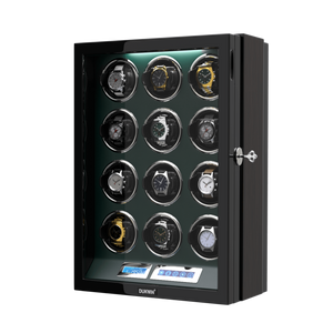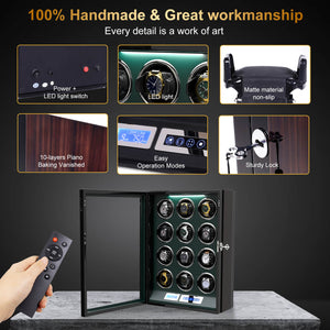 12 Watch Winder for Automatic Watches LCD Remote Control Quiet Mabuchi Motors-Green