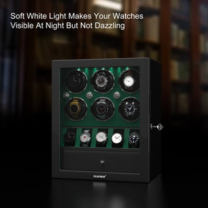 • Material: DUKWIN Automatic Watch Winder for 6 watches is made of 100% handmade wooden with acrylic organic glass window, stylish piano-gloss exterior and the interior vegan leather.