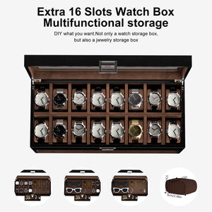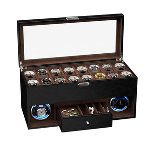 3 in1 Functions Combined Design: Watch winder has 2 winding areas for automatic watch and 16 storage areas equipped, which provide maximum flexibility. And 1 drawer to store your accessories. Simply grab all that you need before you go.