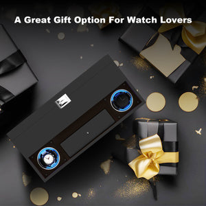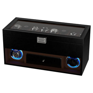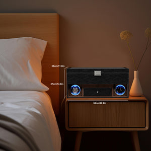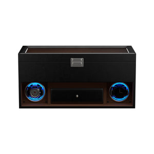 Luxury Radio-Style 2 Watch Winder with LED Light & 16-Slot Storage Box - Black