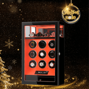 Fingerprint Lock 9 Watch Winders with Extra 4 Watches Storage LCD Remote Control - Flame Orange