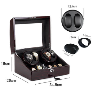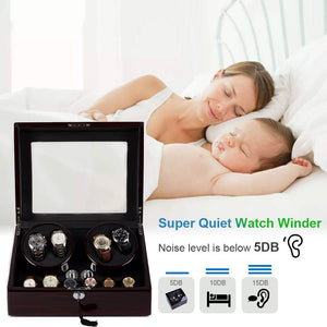 Home 4 Watch Winder with 6 Storage Space with Quiet Mabuchi Motors - Ebony