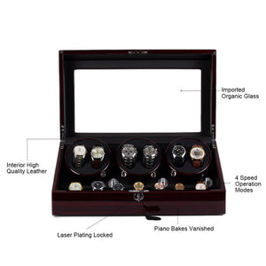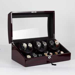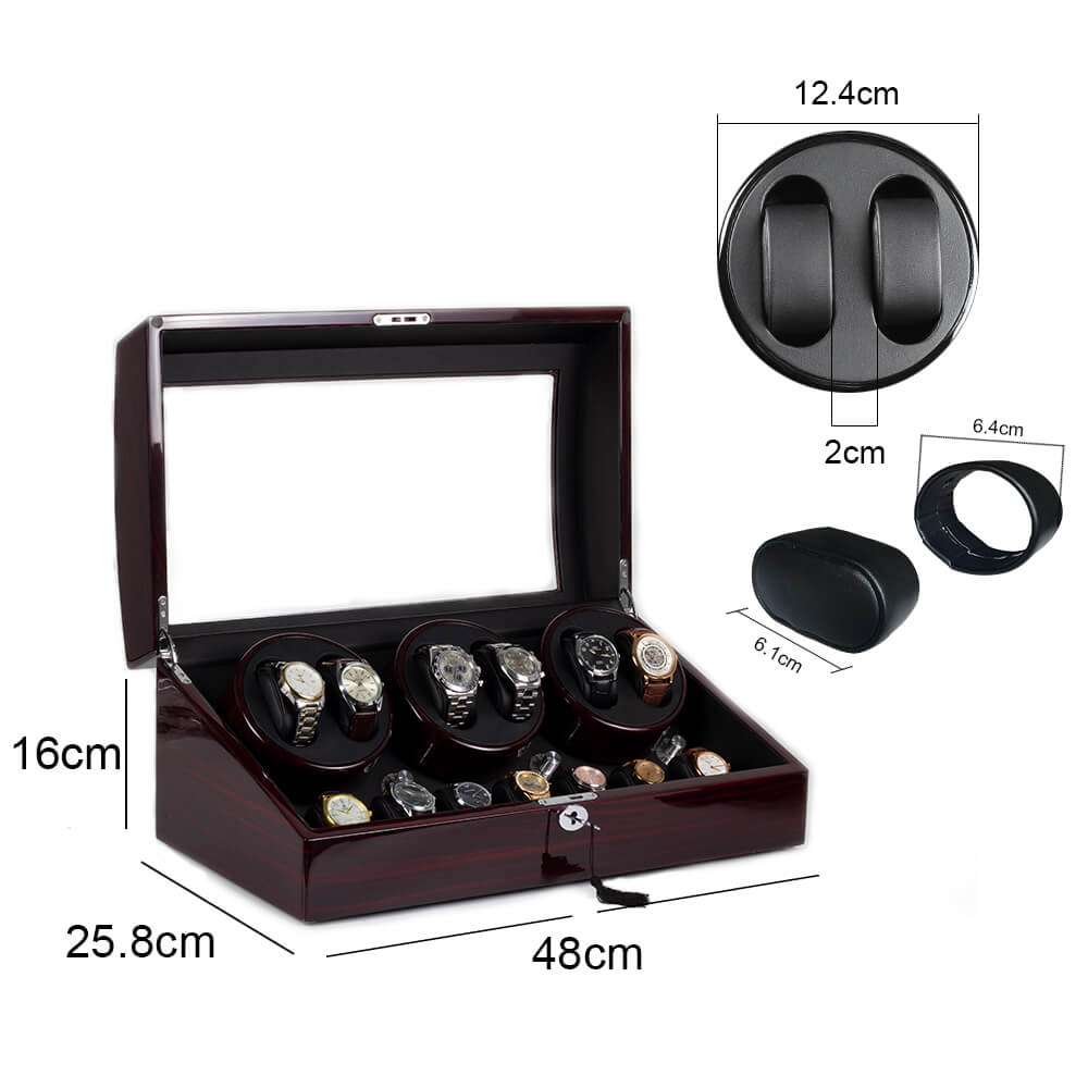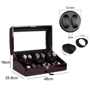 6 Watch Winder with 7 Storage Space Quiet Mabuchi Motors MDF with Lock -  Ebony