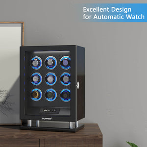 Special Edition- 9 Watch Winder with Upgraded Fingerprint UnLock RGB Light Large Watch Box