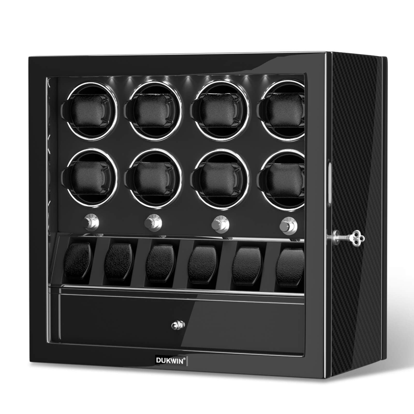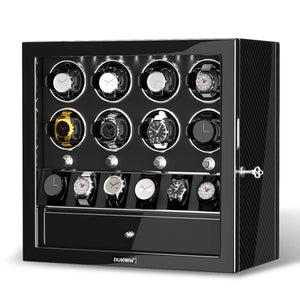 • Material: DUKWIN Automatic Watch Winder for 8 watches is made of handmade wooden with acrylic organic glass window, stylish piano-gloss exterior and the interior vegan leather.