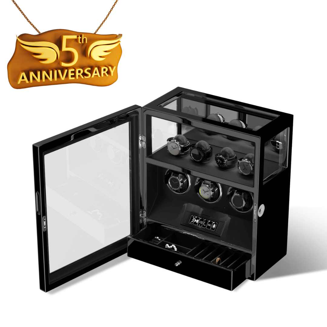 LCD and Remote Control: All information on the watch winder modes is shown. The touchscreen option and Remote Control make the setup process much easier.