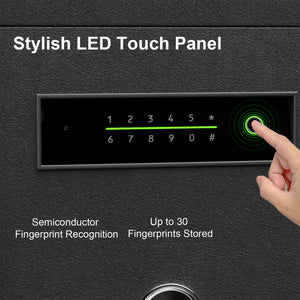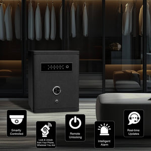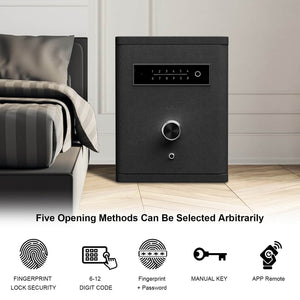 Equipped with advanced technology and a fast fingerprint scanner for quick access, the safe offers five unlocking methods: biometric fingerprint, 6 - 12 digit keypad code, override key, remote APP access, and fingerprint password. It also features a dual warning alarm system against brute-force attacks and technical unlocking attempts, providing an extra layer of protection. Rest assured, your watches and jewelry are effectively safeguarded against unauthorized access.