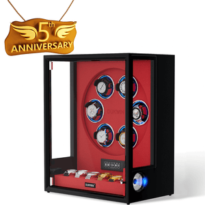 VIRTUOSO – Premium 6 Watch Winder with Fingerprint Lock & Extra Storage - Red