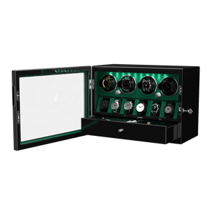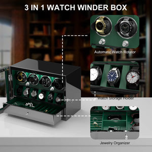 4 remontoirs de montres pour montres automatiques avec organisateur d'affichage de 6 montres - Vert