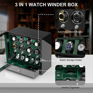 8 Remontoirs De Montres Avec 6 Montres Organisateur De Rangement Grand Espace - Vert
