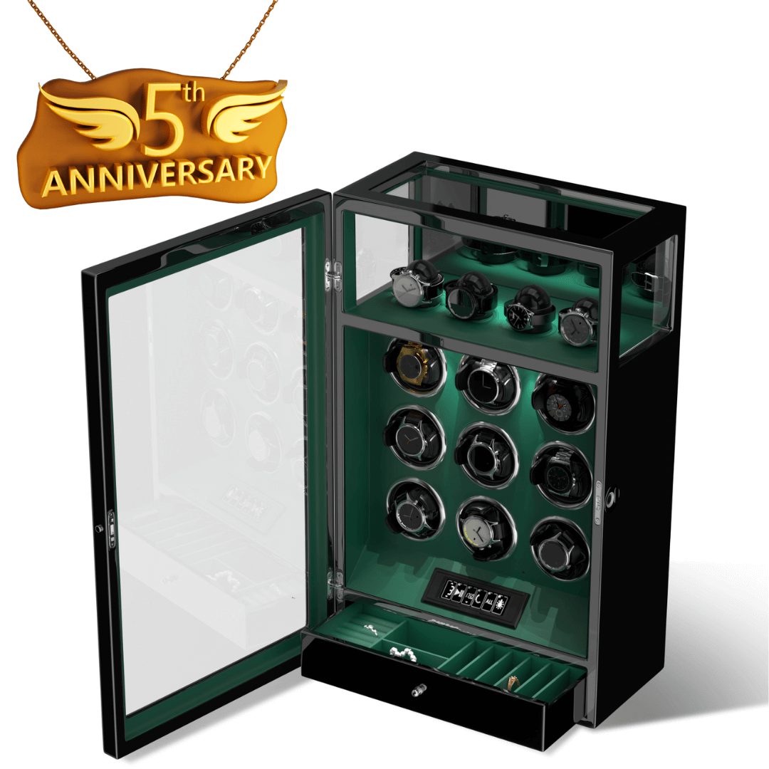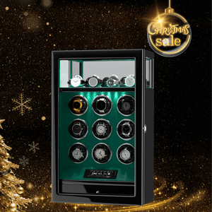 Verrouillage D'empreinte Digitale 9 Remontoirs De Montre Avec 4 Supports De Montre Stockage Télécommande LCD - Vert