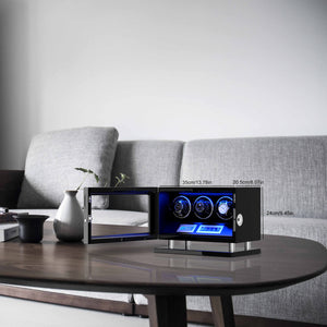 • Écran LCD et télécommande : l'écran tactile LCD vous permet de régler chaque remontoir selon les paramètres souhaités pour votre montre. Vous pouvez également le contrôler à distance, ajuster facilement les programmes et allumer/éteindre la lumière sans ouvrir la porte.
