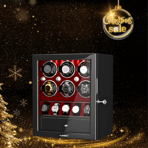 • Matériau : Le remontoir automatique DUKWIN pour 6 montres est fabriqué à 100 % en bois fait main avec une fenêtre en verre organique acrylique, un extérieur élégant en piano brillant et un intérieur en cuir végétalien.