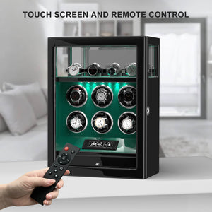 Verrouillage D'empreintes Digitales 6 Remontoirs De Montres Avec Télécommande LCD De Stockage De Montres Supplémentaires - Vert
