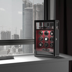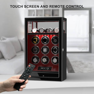 Verrouillage D'empreinte Digitale 9 Remontoirs De Montre Avec 4 Supports De Montre Stockage Télécommande LCD - Rouge