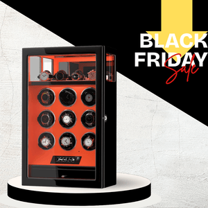 Remontoir à 9 montres avec verrouillage par empreinte digitale et rangement supplémentaire pour 4 montres, télécommande LCD - Orange flamme