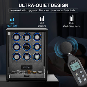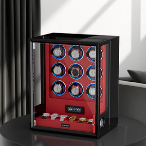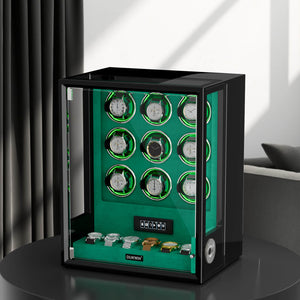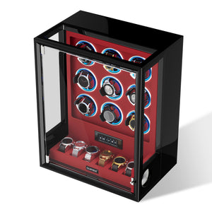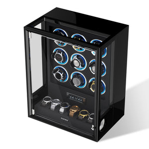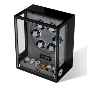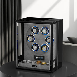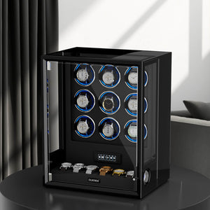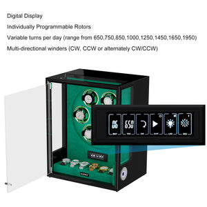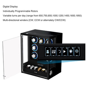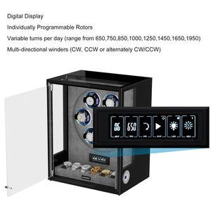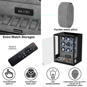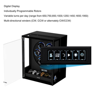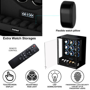 Verrouillage D'empreinte Digitale 3 Remontoirs De Montres Avec Télécommande LCD De Stockage Supplémentaire De 4 Montres - Noir