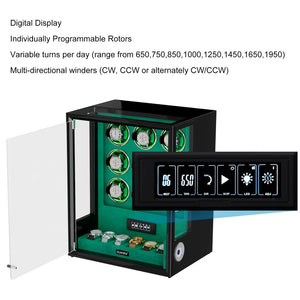 LCD et télécommande : toutes les informations sur les modes du remontoir de la montre sont affichées. L'option d'écran tactile et la télécommande facilitent grandement le processus de configuration.