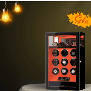 Remontoir à 9 montres avec verrouillage par empreinte digitale et rangement supplémentaire pour 4 montres, télécommande LCD - Orange flamme