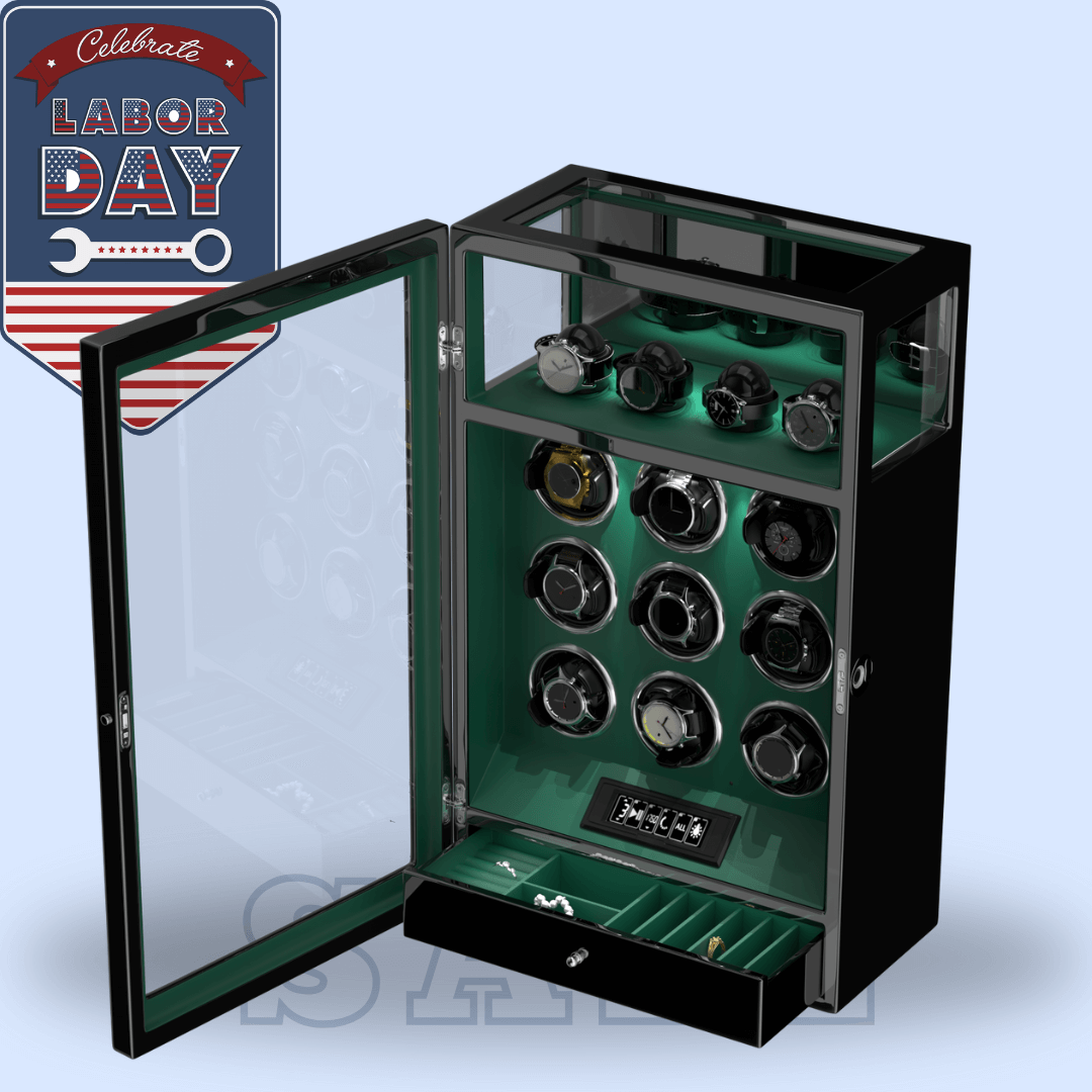 Edizione speciale: avvolgitore per 9 orologi con impronta digitale aggiornata, scatola per orologi grande con luce RGB e sblocco