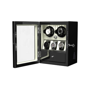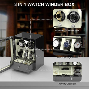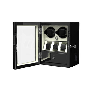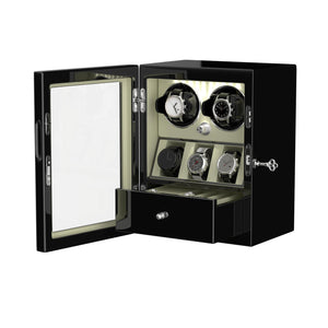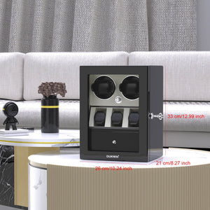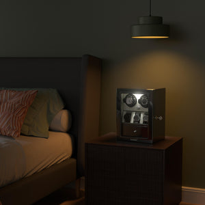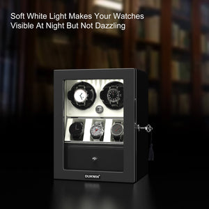 Materiale : il carica orologi automatico Dukwin per 2 orologi è realizzato in legno fatto a mano con finestra in vetro acrilico organico, elegante esterno lucido e interno in pelle vegana.