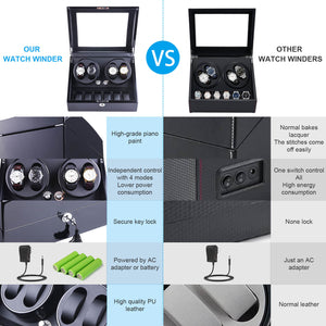 Caricatore per 4 orologi con 6 vani portaoggetti con motori Mabuchi silenziosi - nero