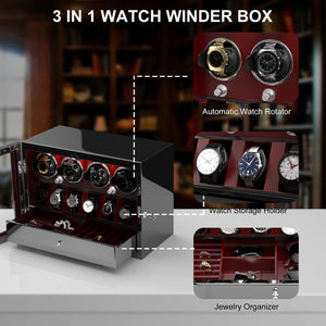 4 caricaorologi per orologi automatici con display organizer per 6 orologi - rosso