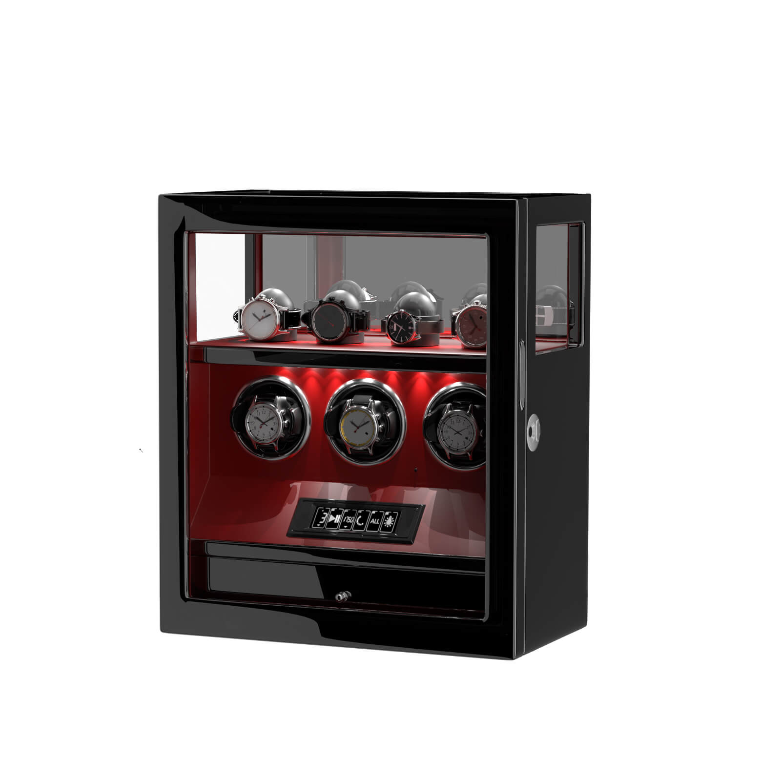 Blocco delle impronte digitali 3 caricaorologi con telecomando LCD per riporre gli orologi extra - Rosso