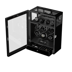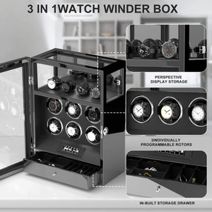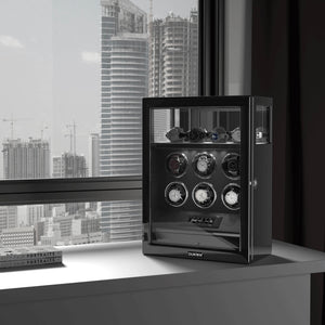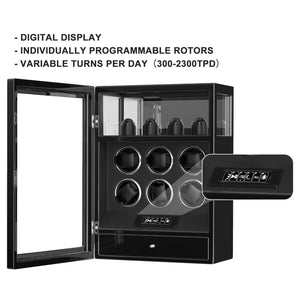 Blocco delle impronte digitali 6 caricatori per orologi con telecomando LCD per riporre gli orologi extra - nero