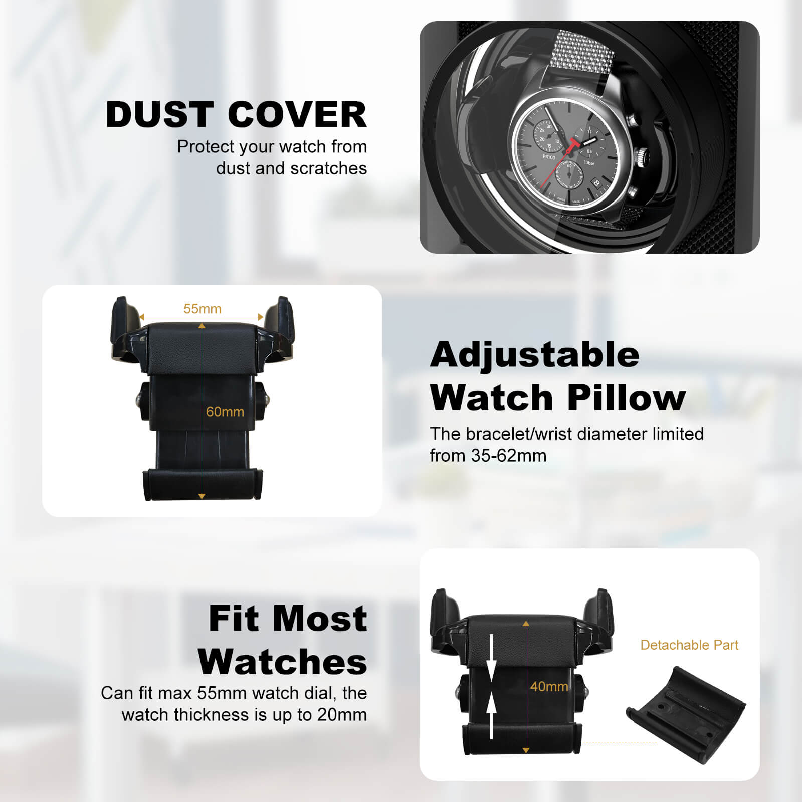 Doppia alimentazione: il nostro caricaorologio singolo può essere alimentato tramite ricarica USB o 2 batterie AA (non incluse), è possibile caricarlo tramite power bank durante il viaggio ed è comodo da trasportare.