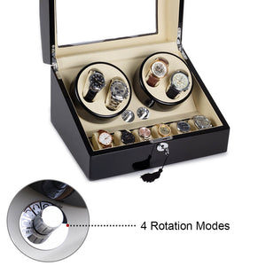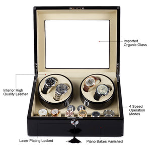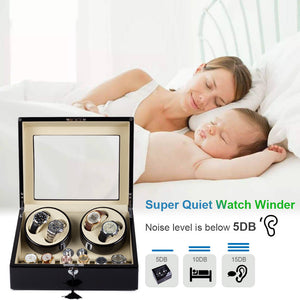 Home 4 Watch Winder with 6 Storage Space with Quiet Mabuchi Motors - Black&White