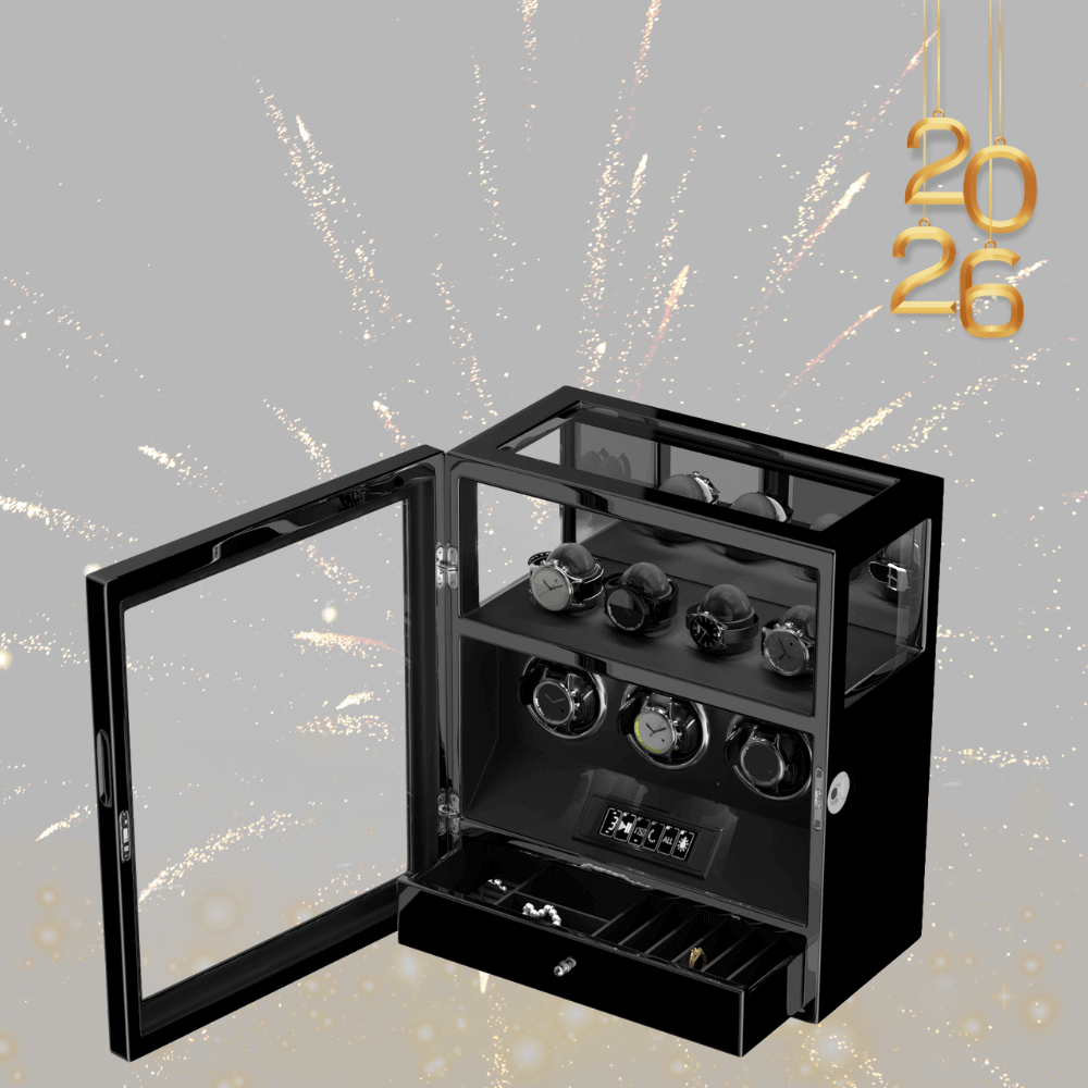 4 Watch Winder with 6 Storage Space with Quiet Mabuchi Motors - Black&White