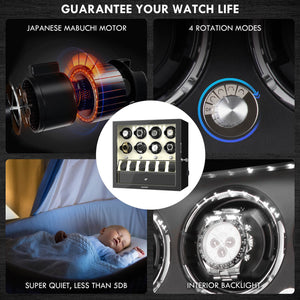 Compact 8 Watch Winders with 6 Watches Large Storage Space Quiet Mabuchi Motor - Off-white