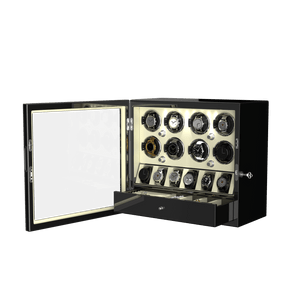 Storage: 8 winding modules, 6 watches holder and 1 jewellery drawer.
