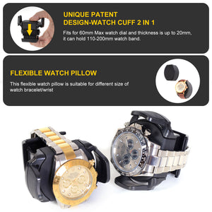 Cuff: Patented lock-in cuff "locks" your timepiece into the rotator drum for a secure fit. Detachable base to accommodate all wrist sizes without putting pressure on your bracelet.