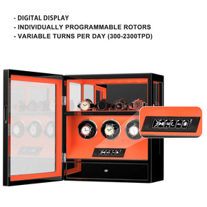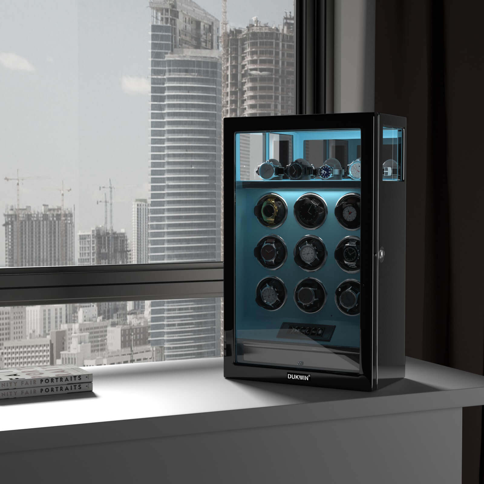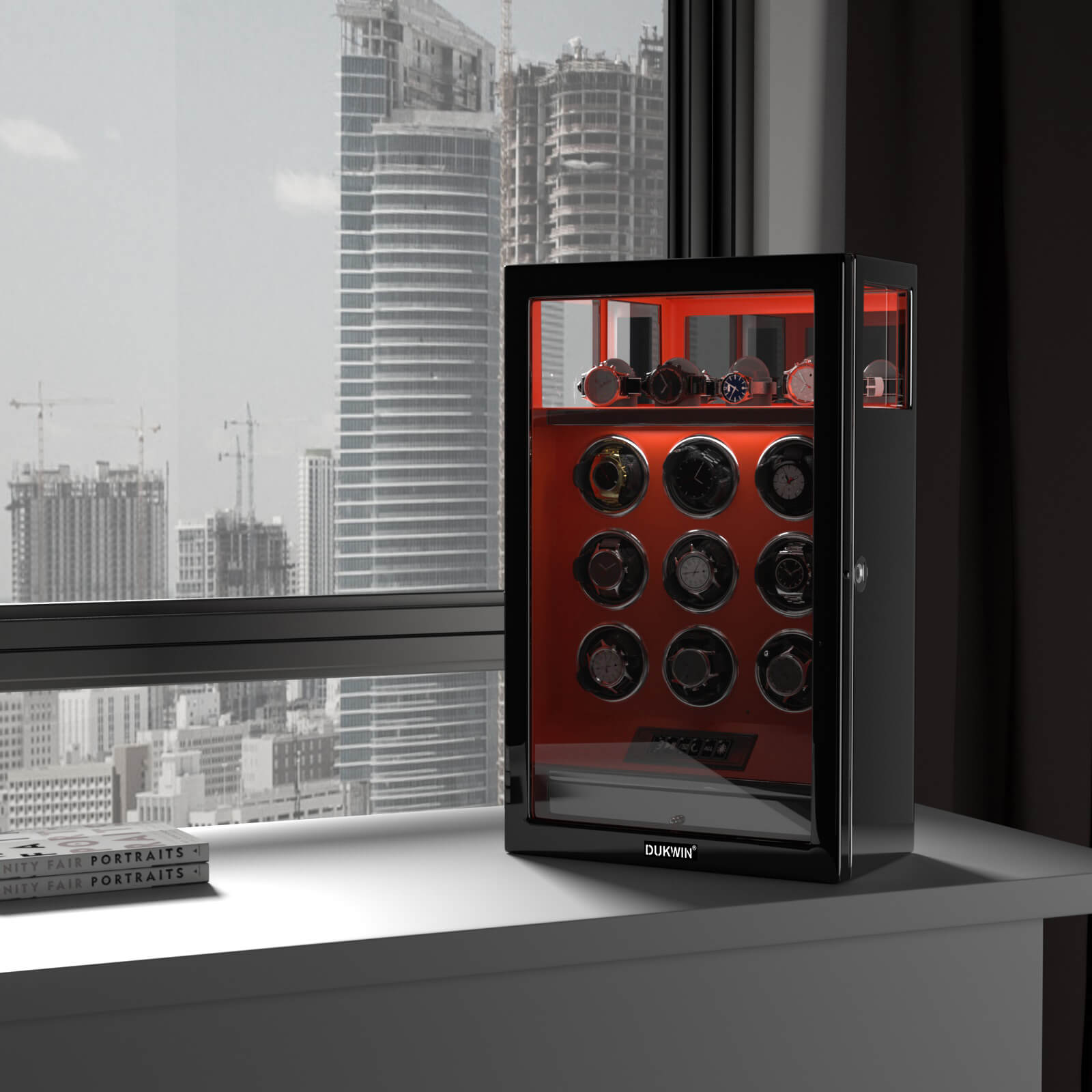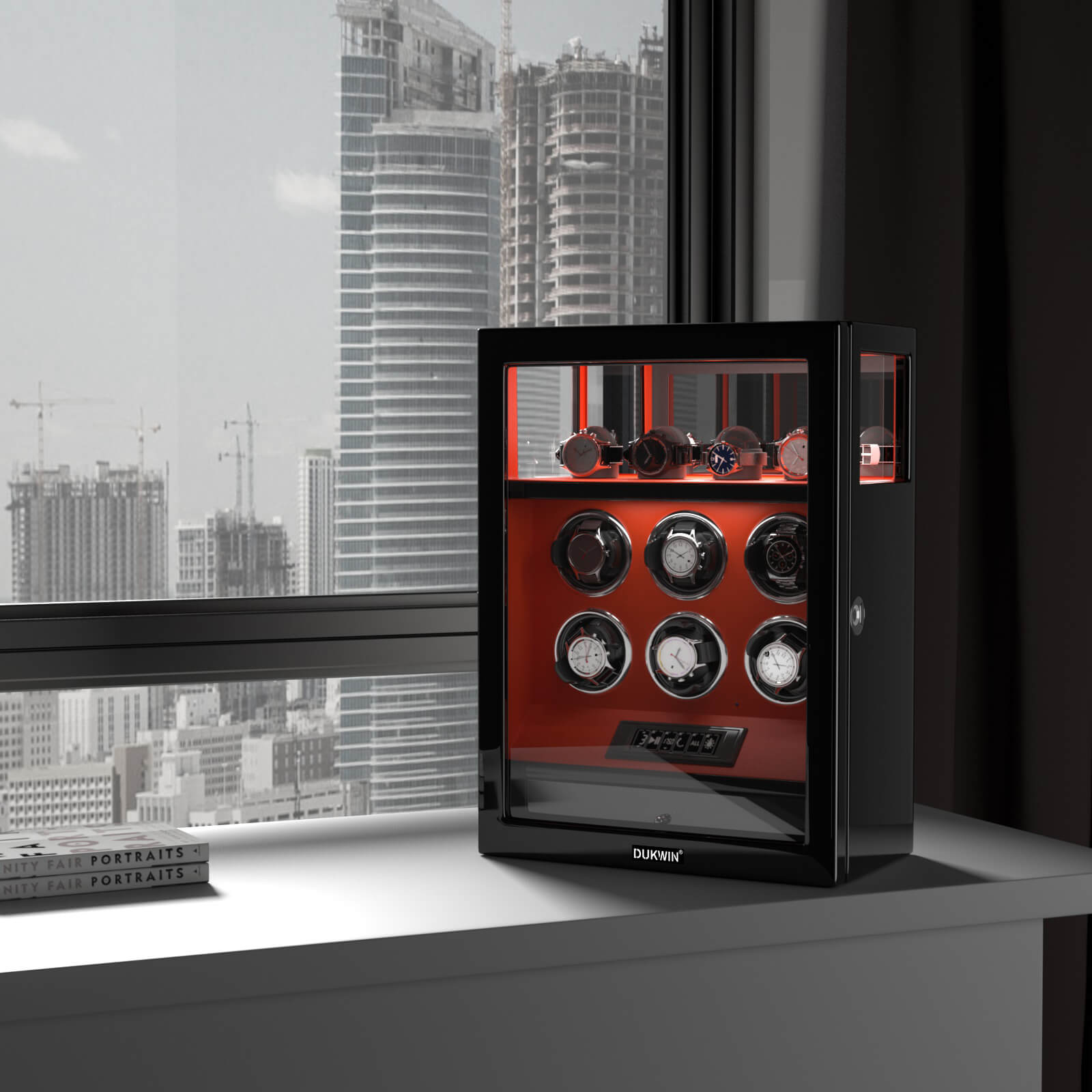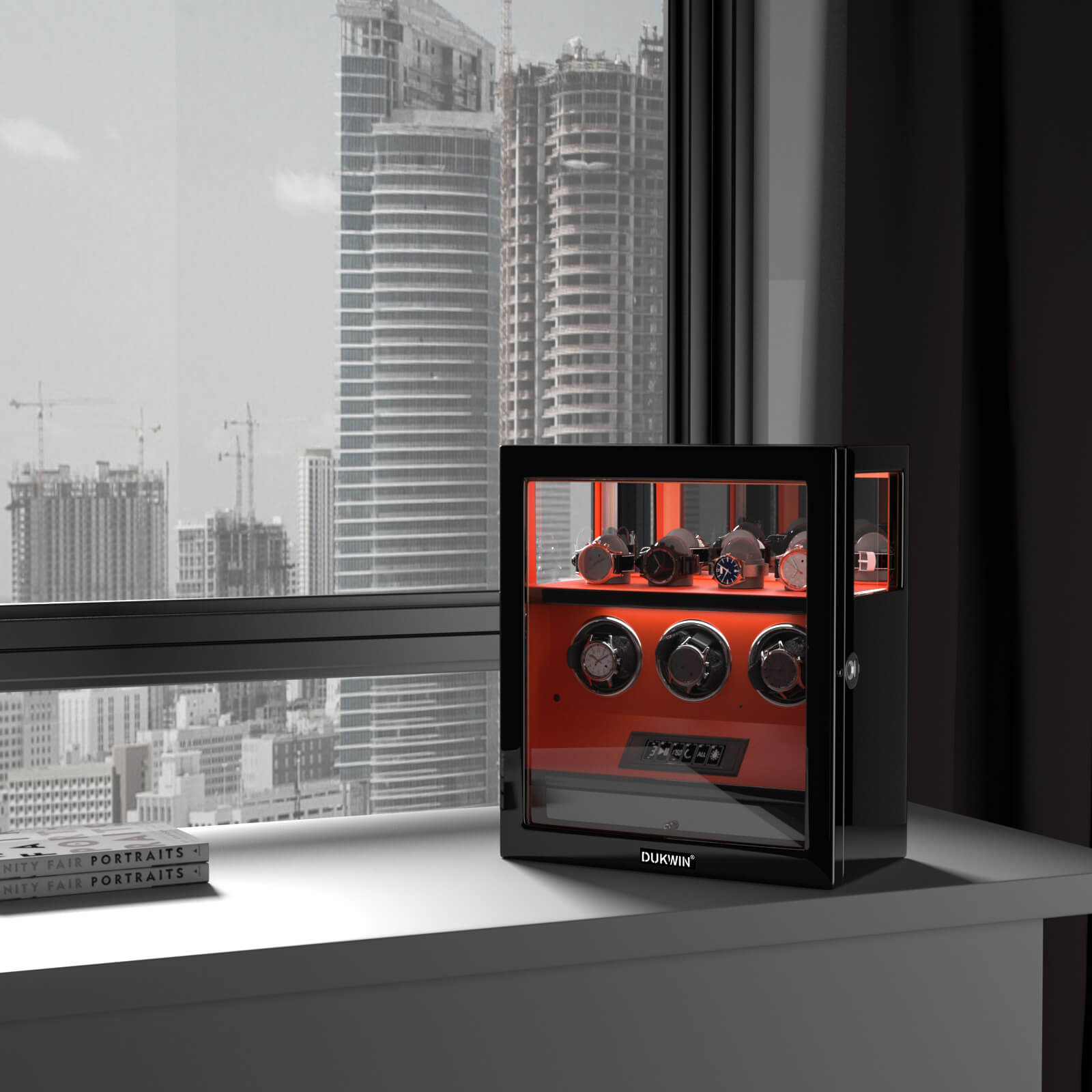 INNOVATIVE UNIQUE DESIGN: Maintaining the functional features of a traditional watch winders with an eye-catching acrylic perspective watch holder storage to display your watches. This peerless innovation design men watch rotator box will be perfect as a centrepiece in your house or shop.