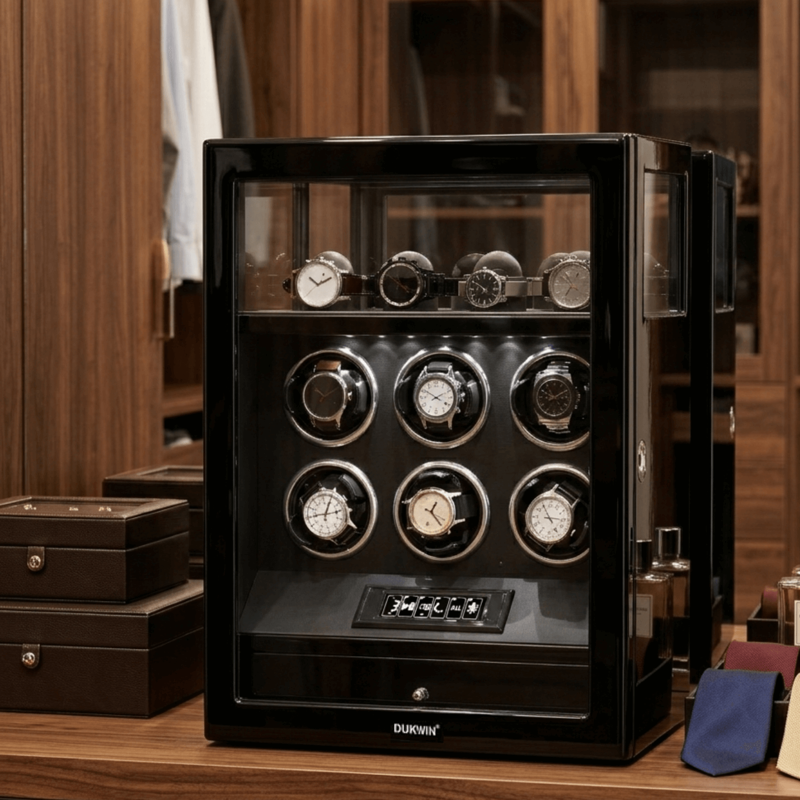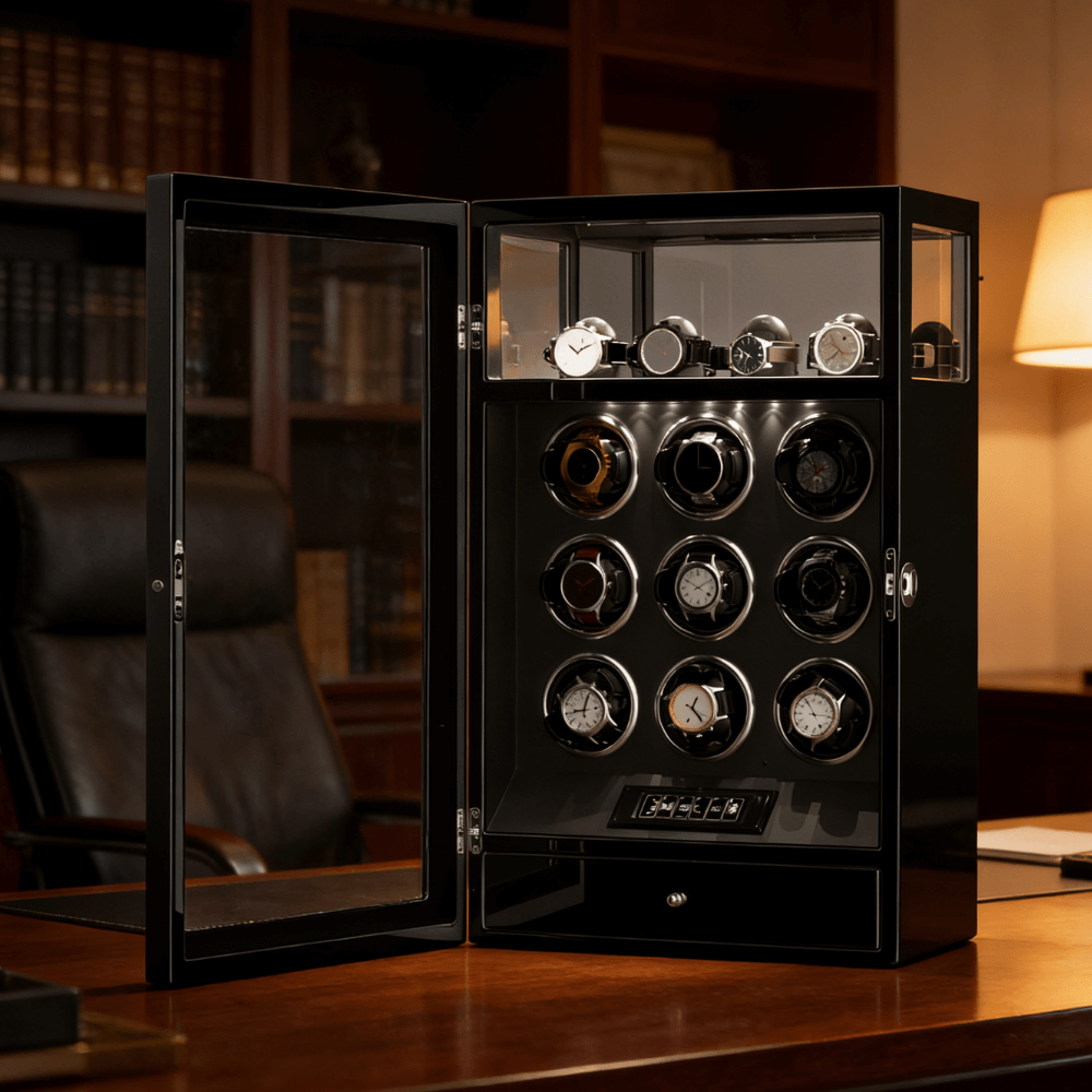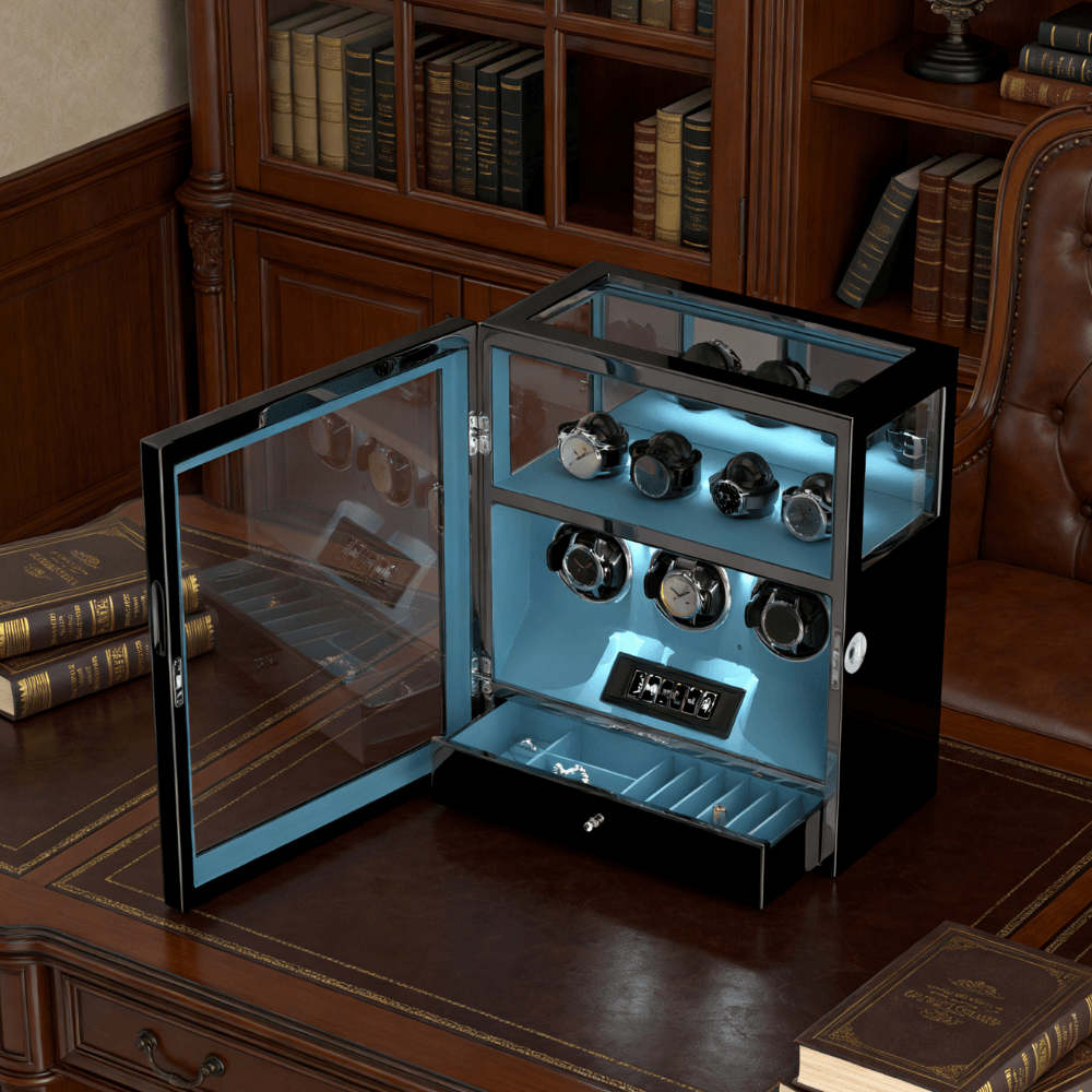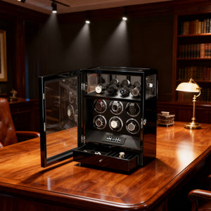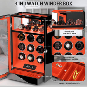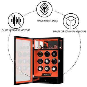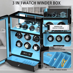 WATCH STORAGE: Store all your watches and accessories in one place. This watch winders combines 3/6/9 winding modules to rotate your watches, 4 watch stand holders to display your watches and 1 drawer to store your accessories. Simply grab all that you need before you go.