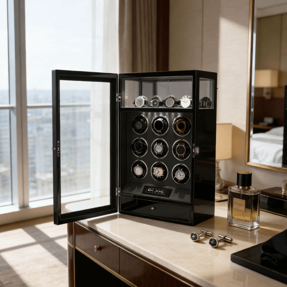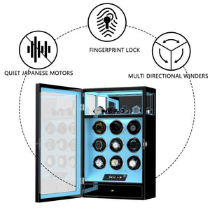 Patented Design Watch Winders with Watch Holder Fingerprint Lock Ultra Quiet Motors