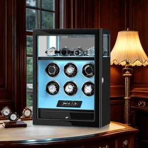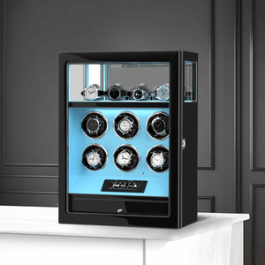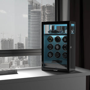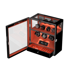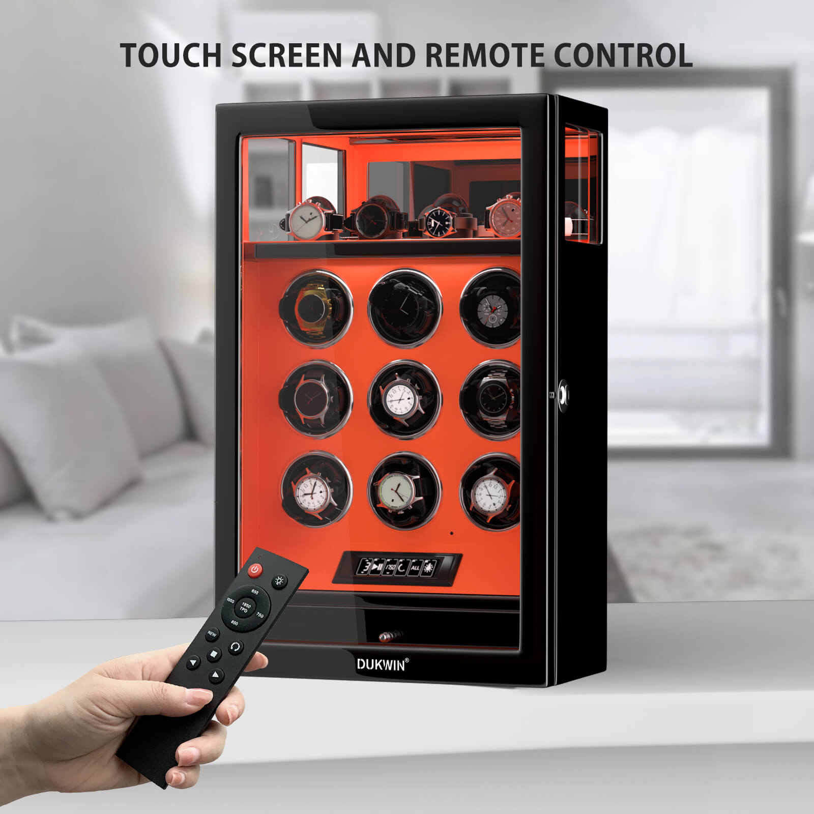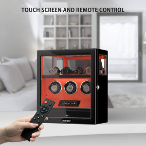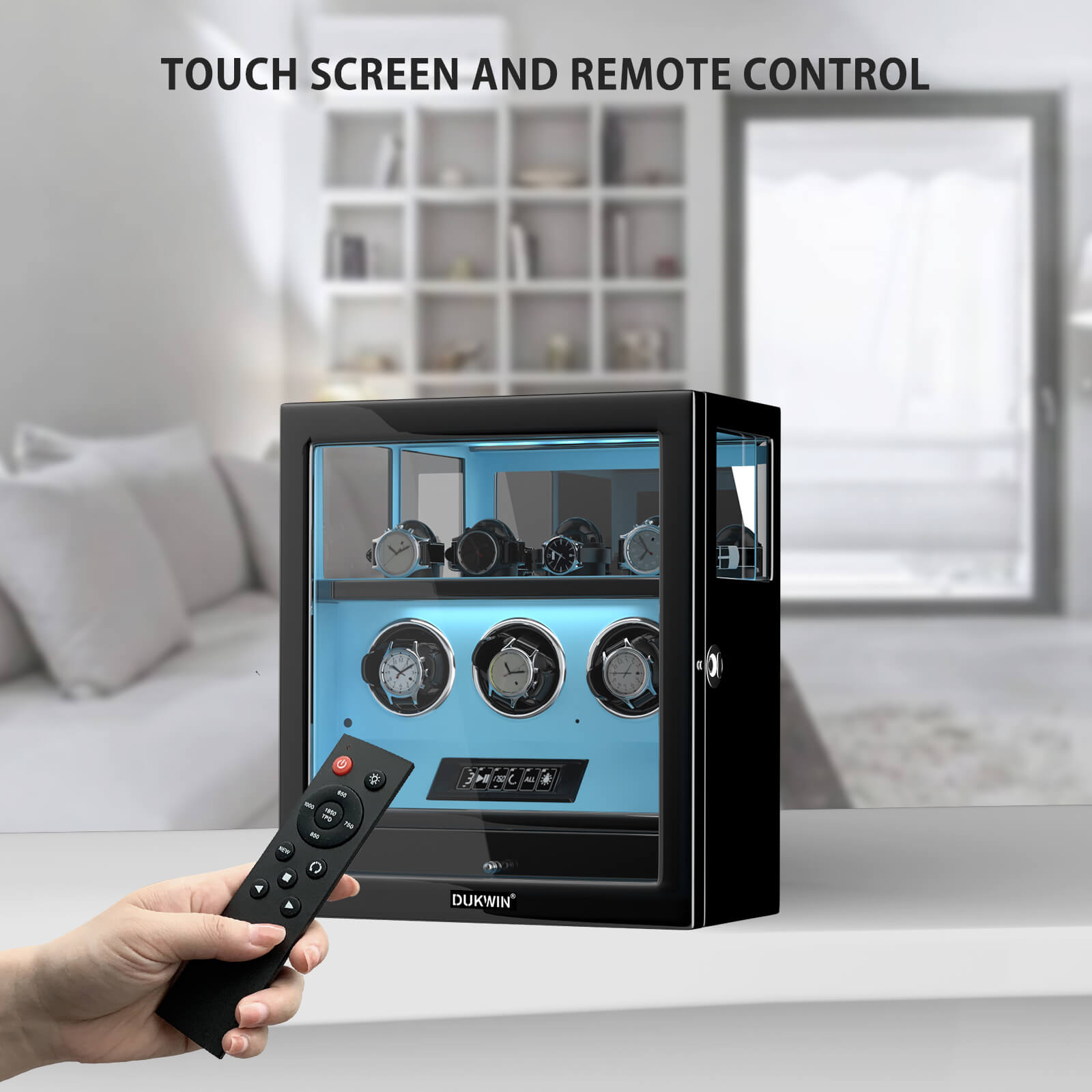 LCD and REMOTE CONTROL: Shows all information on the watch winders modes. Touchscreen option and Remote Control make a setup process much easier.