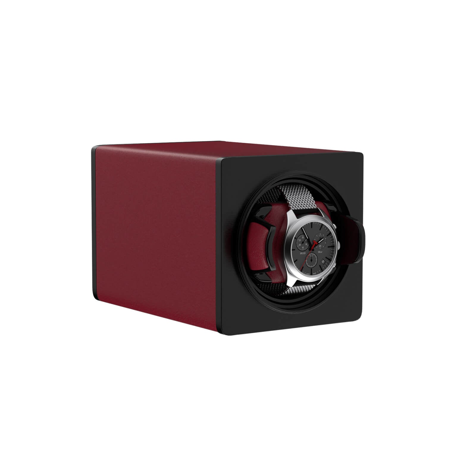 Single Watch Winder for Automatic Watches Vegan Leather Quiet Mabuchi Motors for Travel - Crimson Red