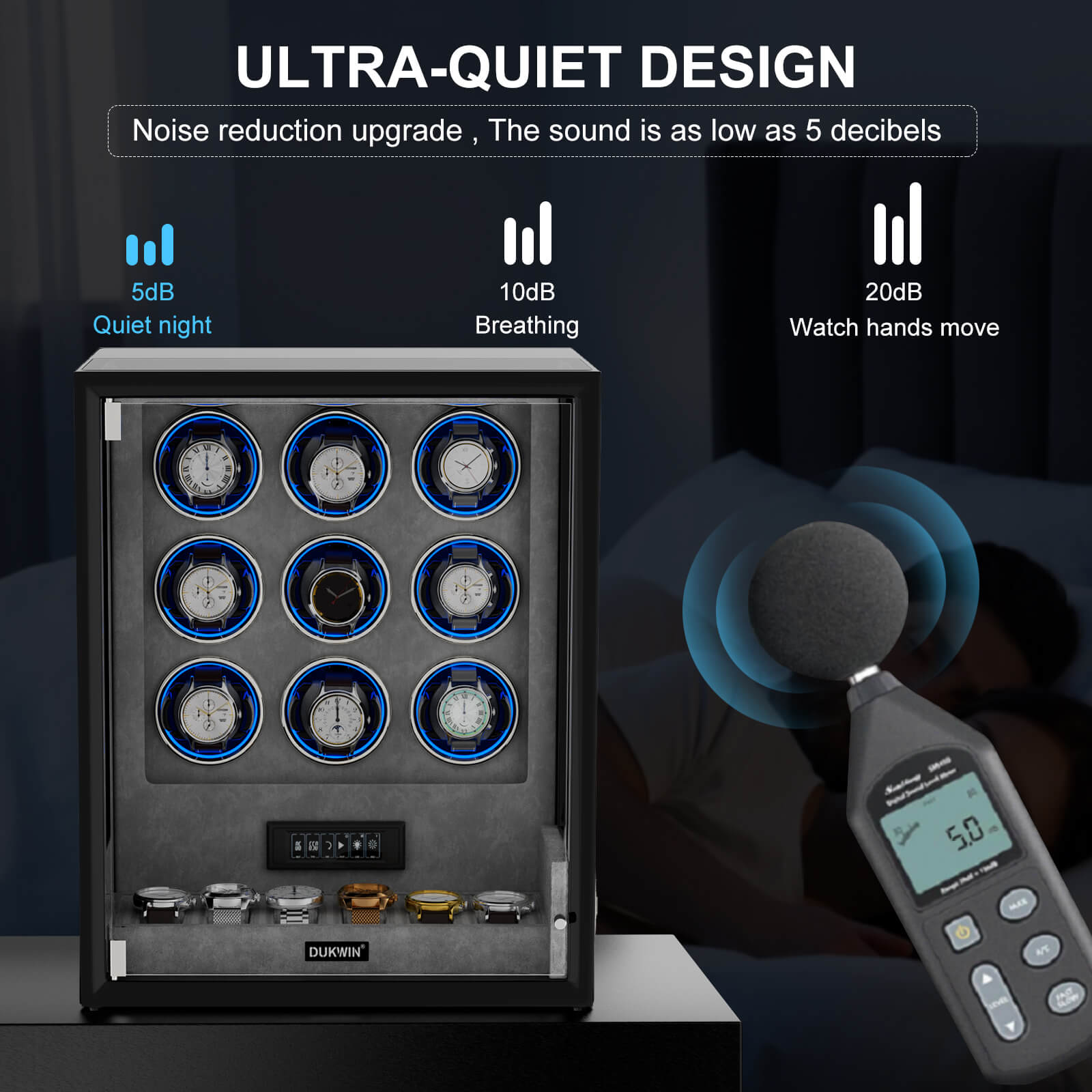 Watch Winder with Fingerprint Unlock RGB Lighting One-of-a-kind Patented Design