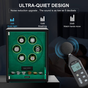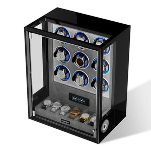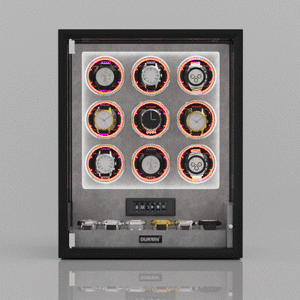 Patented Innovation: The VIRTUOSO watch winder for 6/9 watches impresses with the latest technology and outstanding workmanship, ensuring that each individual watch winder meets the highest standards, the selected solid wood is finished with the utmost care and refined craftsmanship with an exquisite piano lacquer and tempered glass door.
